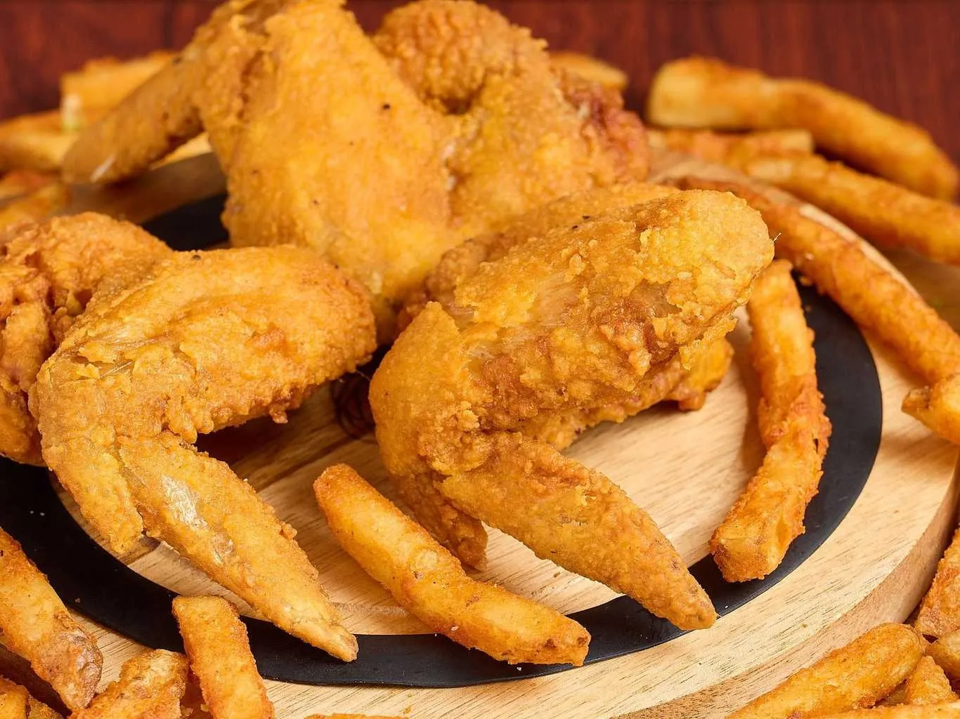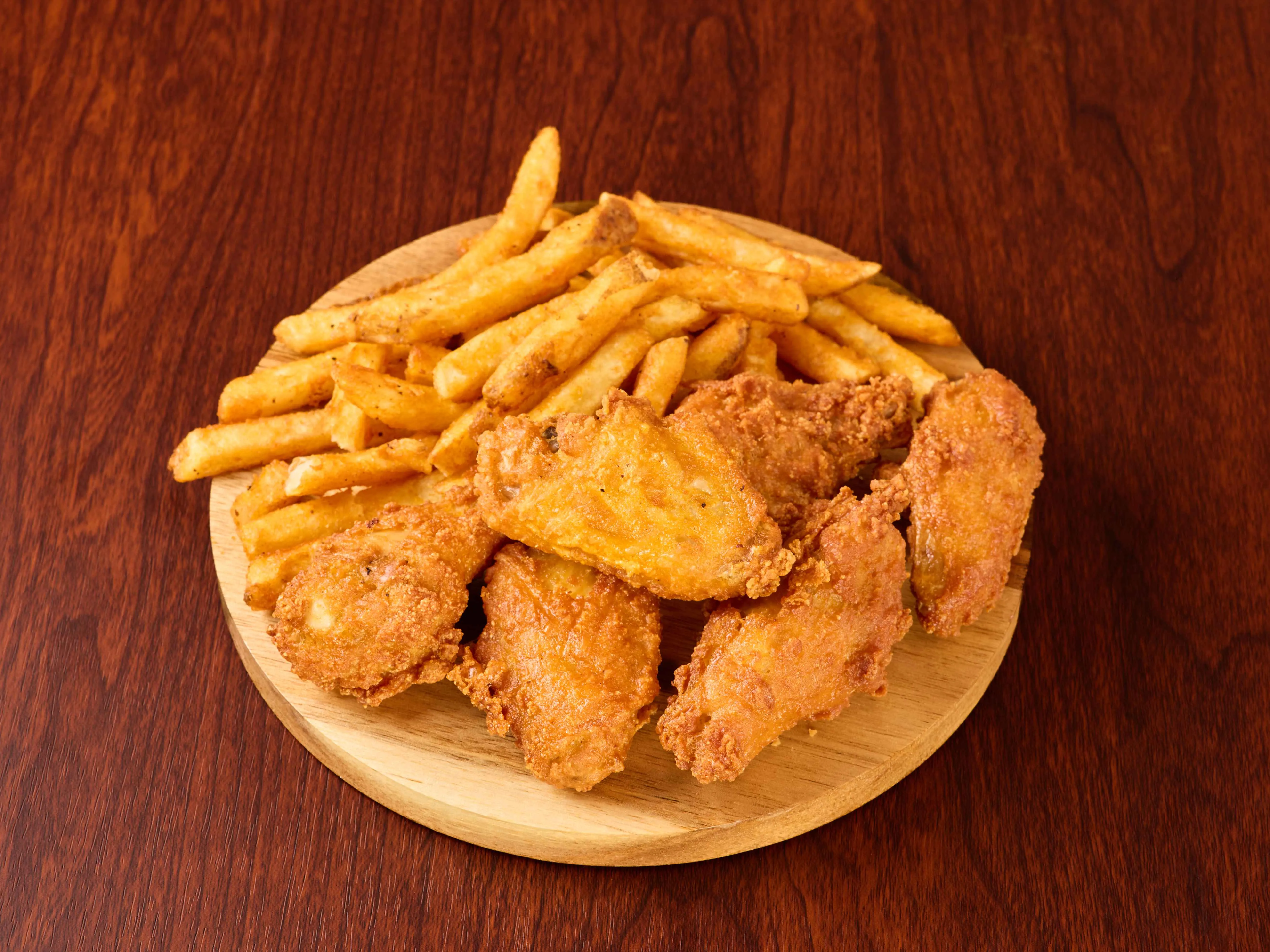 Crispy, Golden-Fried Chicken Wings Served With Seasoned Fries.