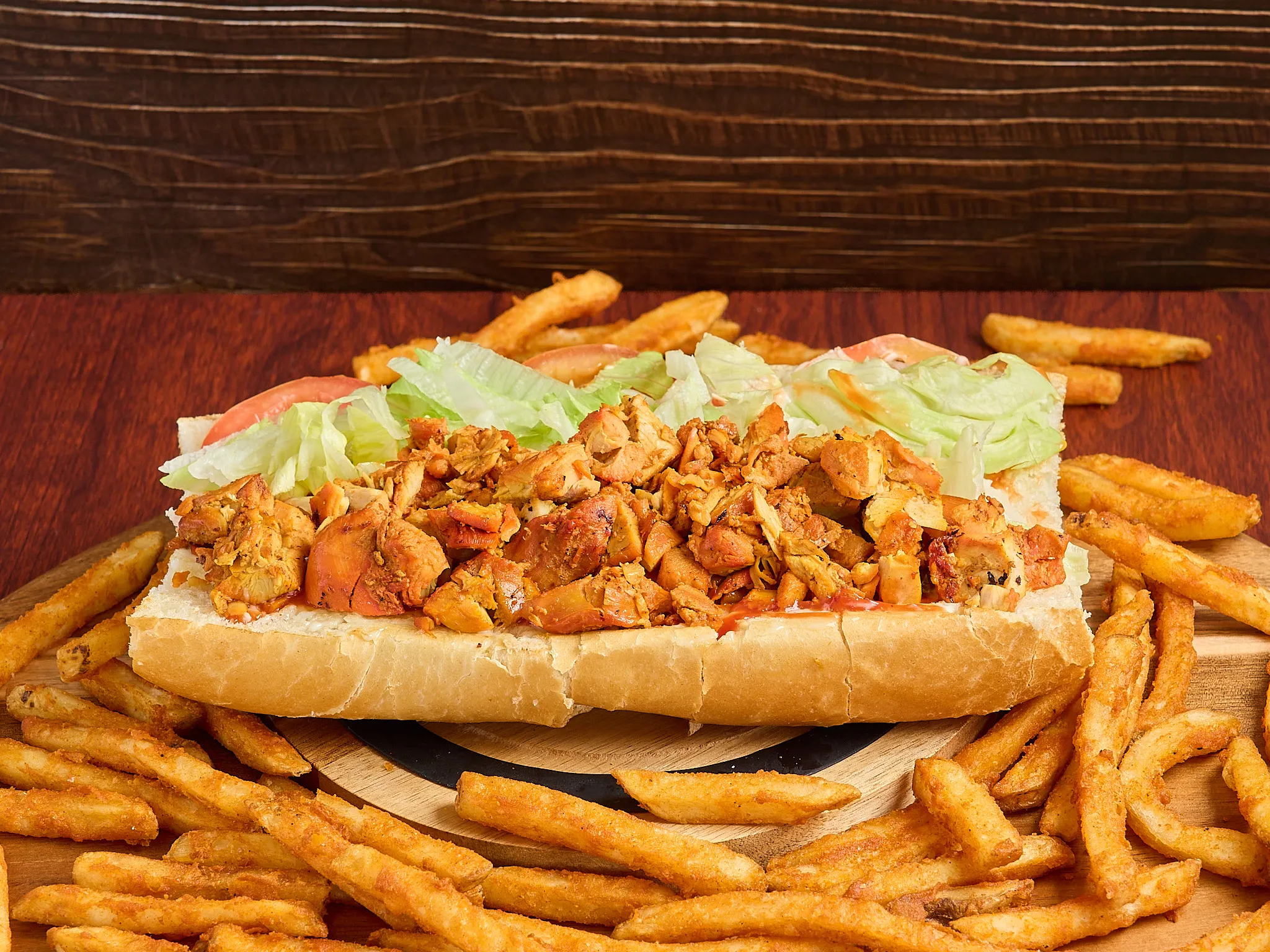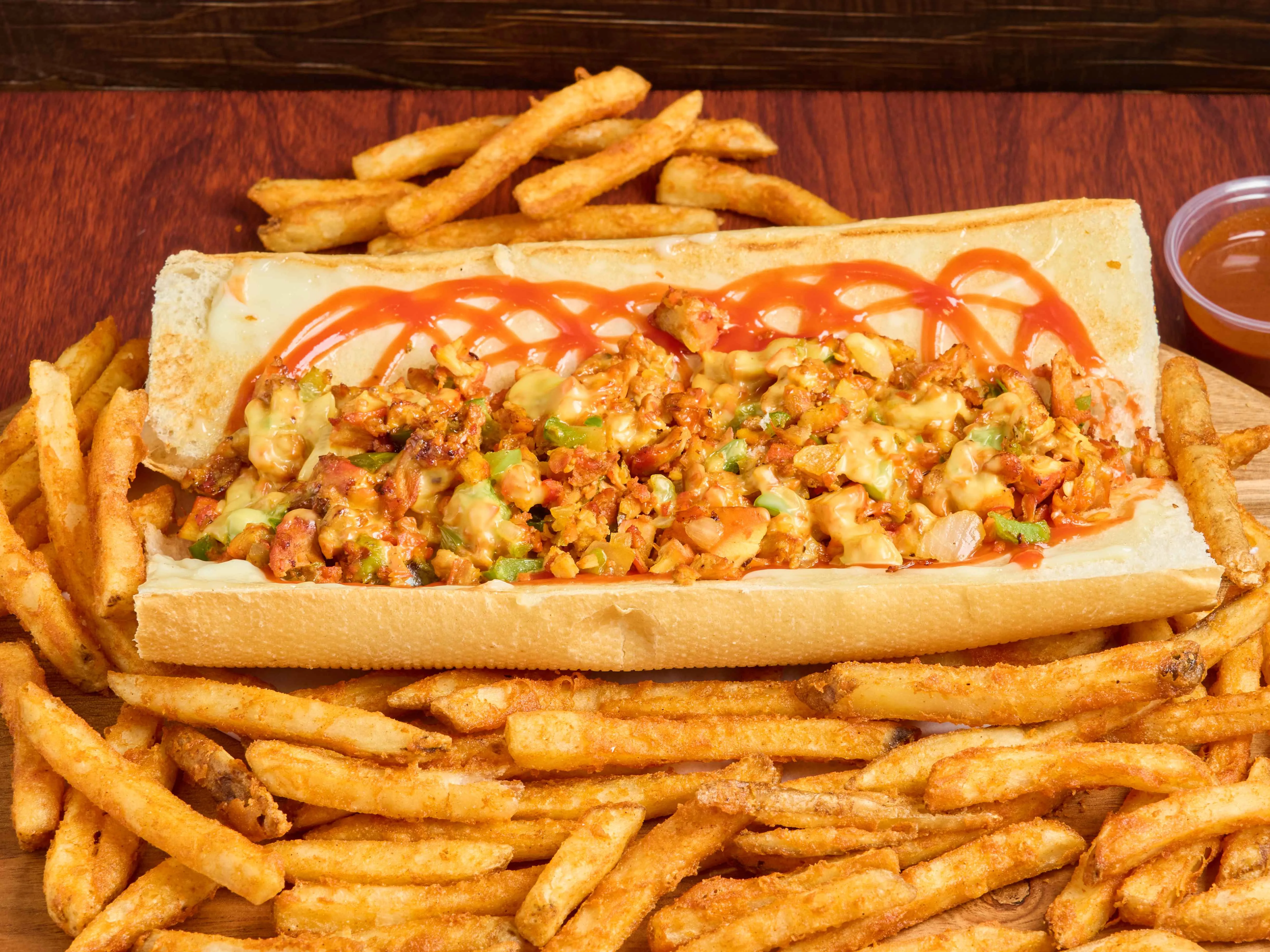 21 Pieces Hot Wings Served With Large Fries. Choose From Bbq, Buffalo, Or Hot Sauce.
