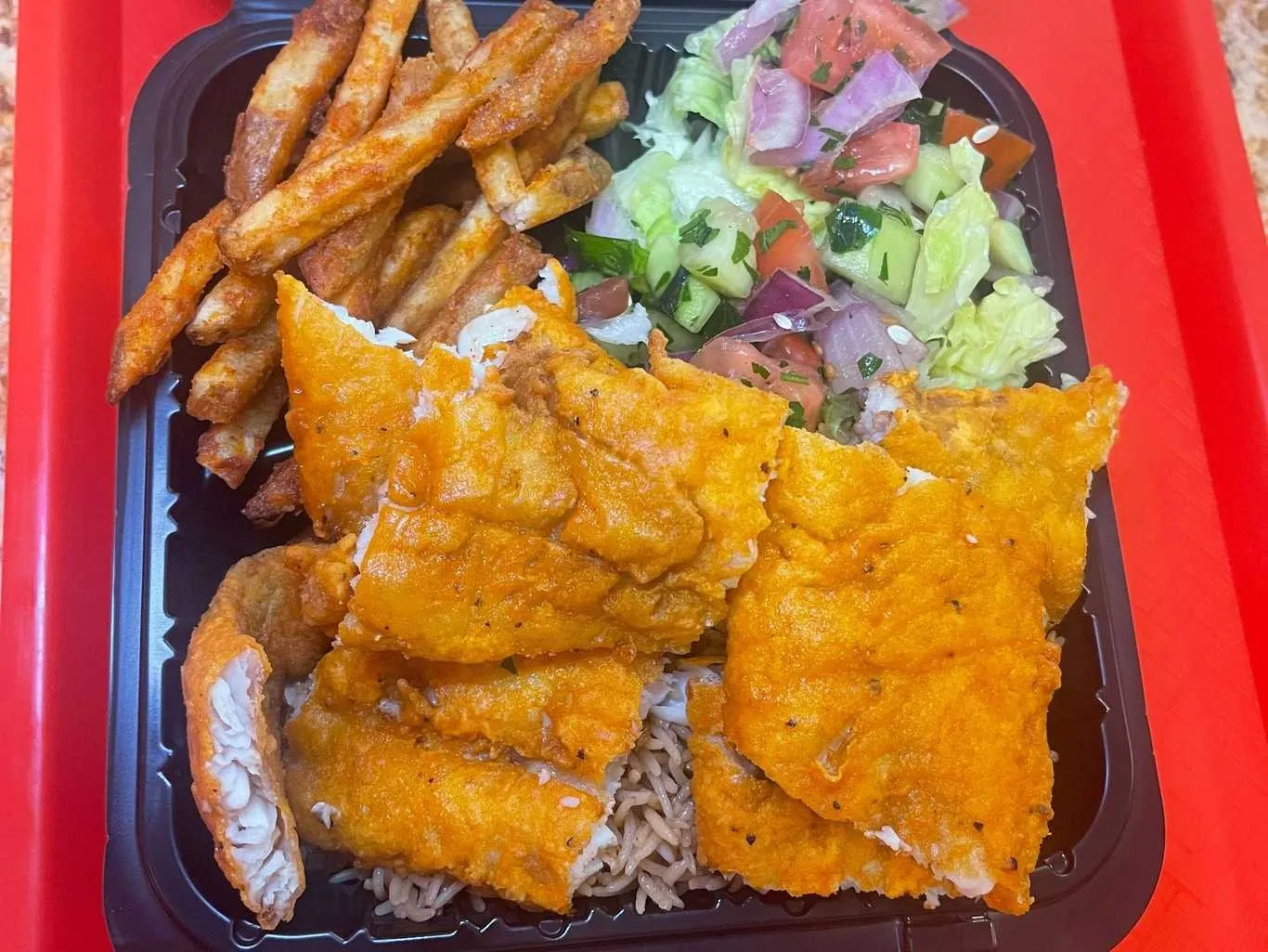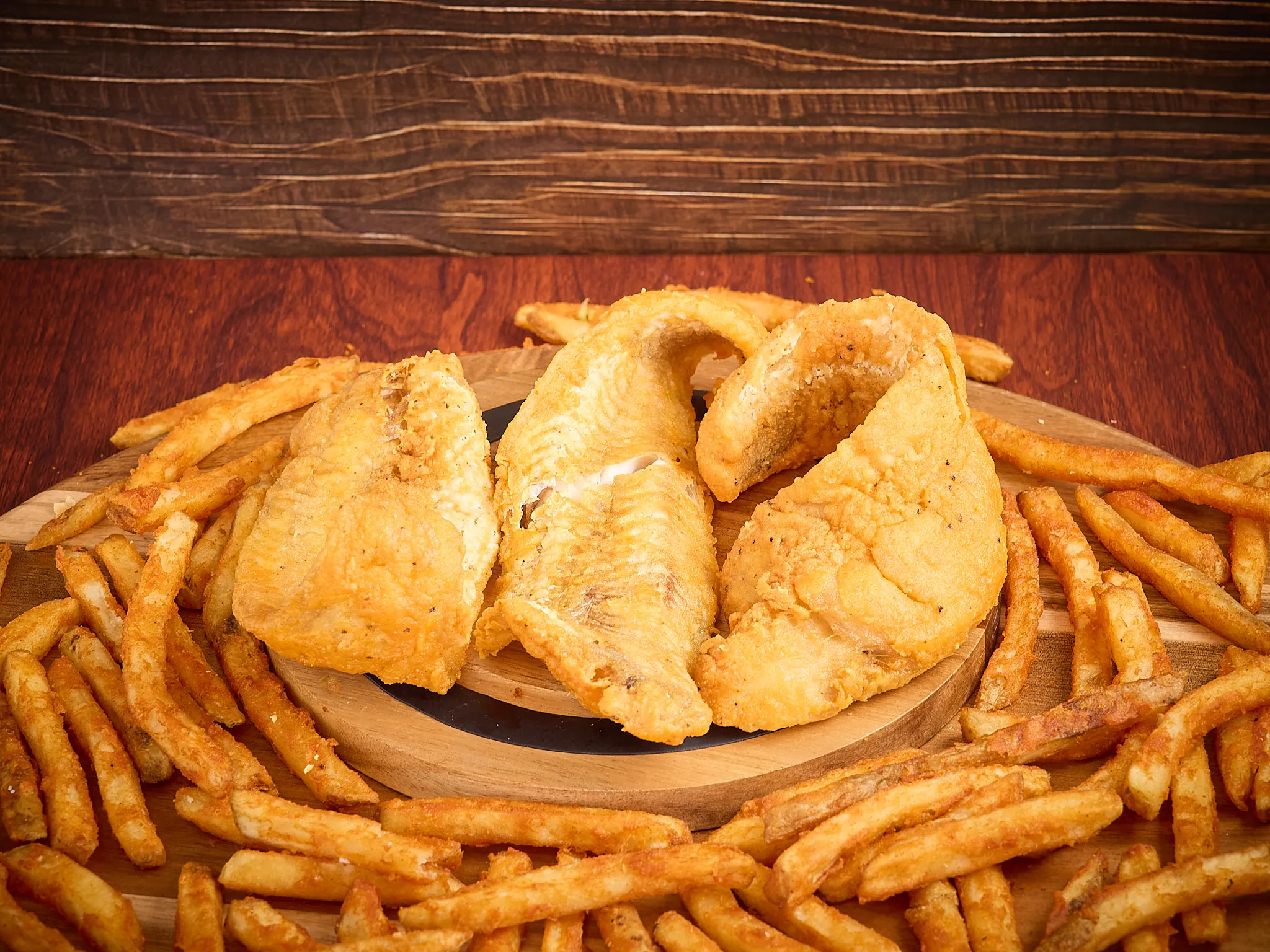 Crispy, Golden-Brown Fried Whiting Fish Fillets, Seasoned To Perfection. Served With A Side Of Fries.