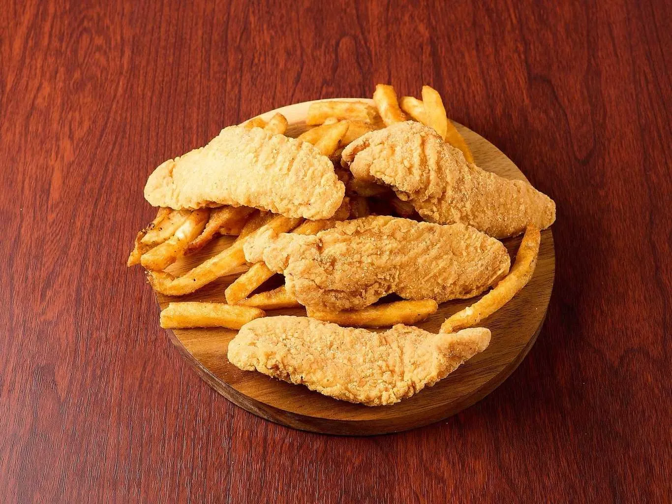 Crispy Chicken Tenders Paired With Golden Fries.