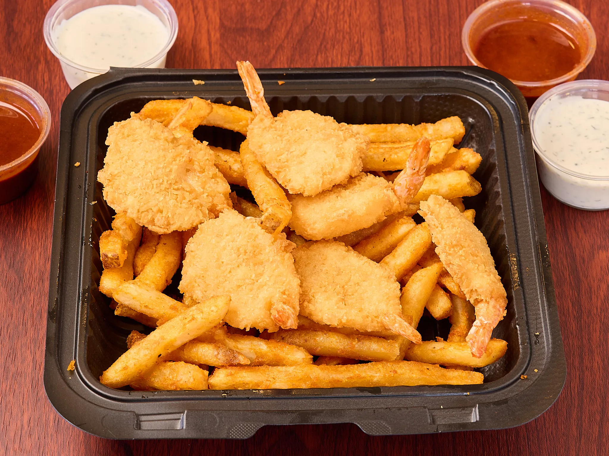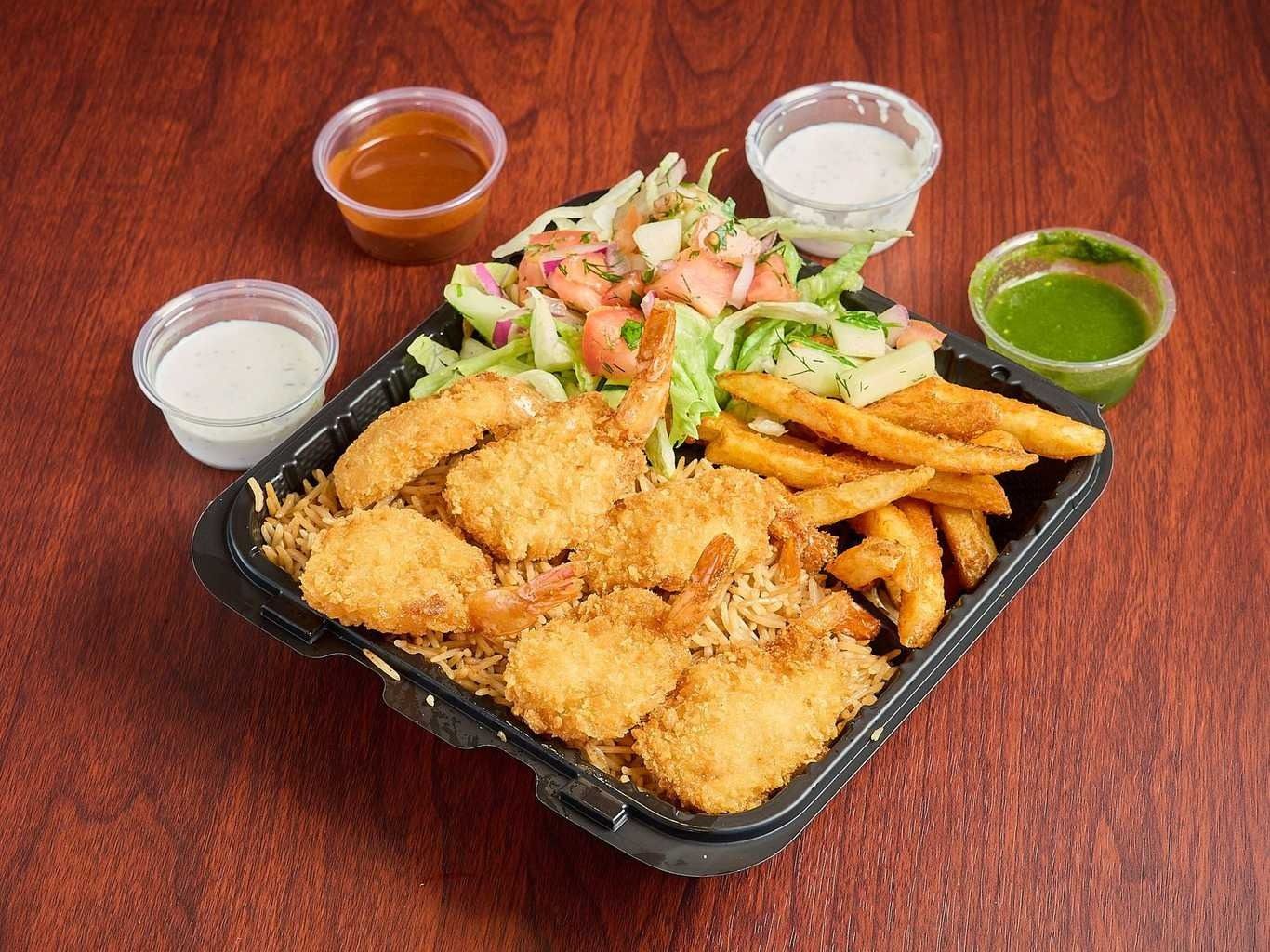 Crispy Breaded Jumbo Shrimp Paired With Seasoned Fries.
